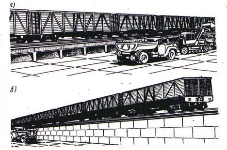 Рис. 2.15 Підвищена колія для вивантаження сипучих вантажів із напіввагонів: а – балочного типу; б – блочного типу