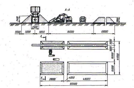 Рис. 2.18 Комплексно-механізована навалочна площадка з підвищеною колією і тракторним навантажувачем
