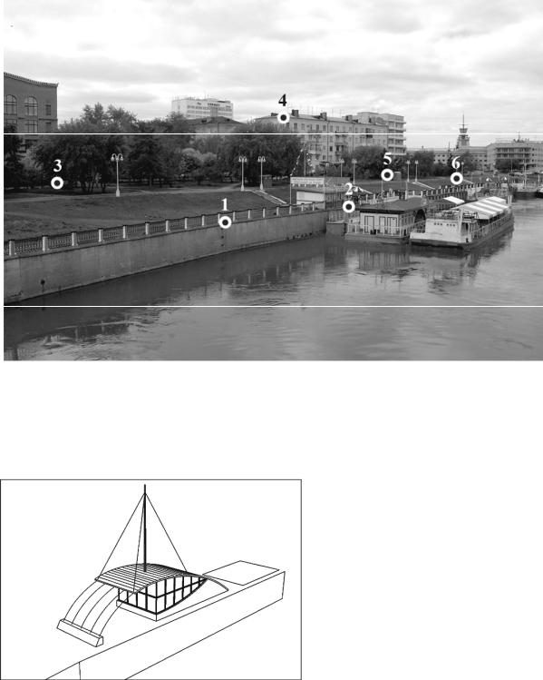 реальных объектов: точка «CamPoint001» – на верхней кромке стенки набережной в месте стыка двух прямых участков, точка