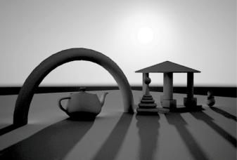 активировать алгоритм расчета освещения «Global Illumination». Выполнить тонирование изображения, убедиться в дополнительном освещении сцены.