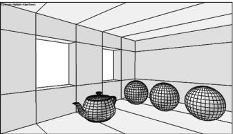 Построить внутри комнаты примитив «Teapot» и три сферы радиусами