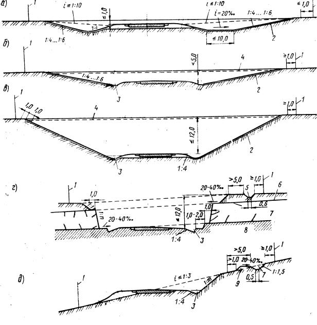 Рис. 4.12. Поперечные профили земляного полотна в выемках: