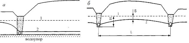 Рис. 11.7. Совершенный (а) и несовершенный дренажи (б) глубокого заложения: