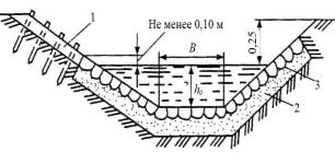 При уклоне дна до 5 –10 ‰ канаву устраивают без укрепления. При ширине менее 1 м на дно укладывают щебень, крупный гра-