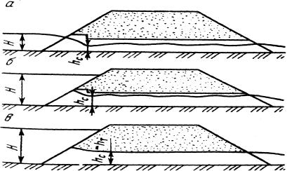 а – безнапорный; б – полунапорный; в – напорный