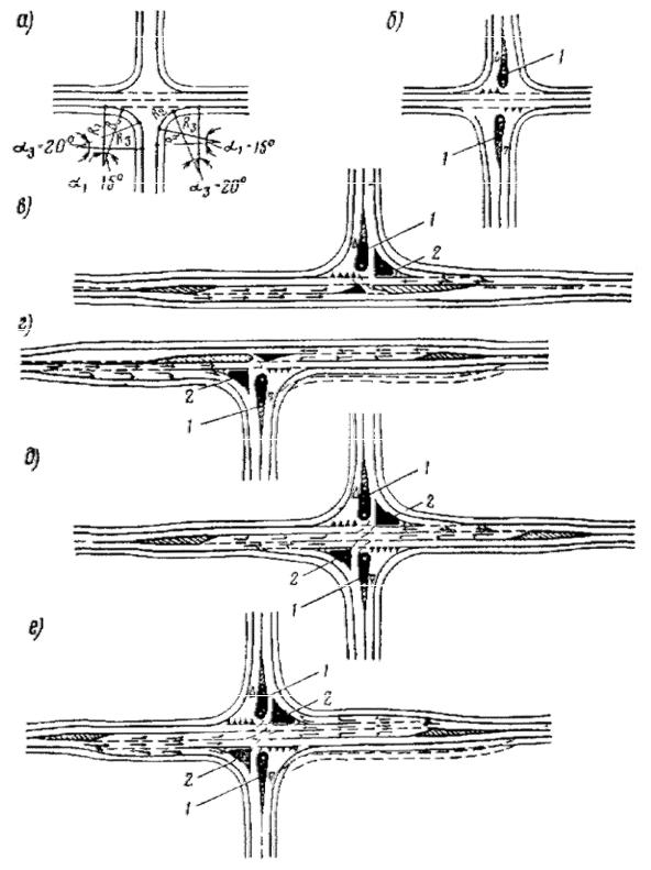 Рис.13.2. Схемы пересечений и примыканий автомобильных дорог в одном уровне: