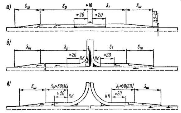 Рис. 13.3. Схемы переходно-скоростных полос: