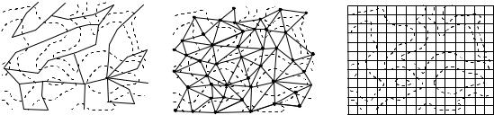 Различия между способами связаны со схемой расположения исходных точек и характером связей между ними (на рис. 6.13–6.15 модели наложены на изображение рельефа горизонталями).