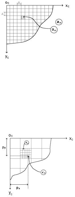 Например, координаты центра пикселя, соответствующего элементу a’33 (рис. 6.17) при величине Δ=20 мкм будут равны хC = 34 мкм и yC = 34 мкм.