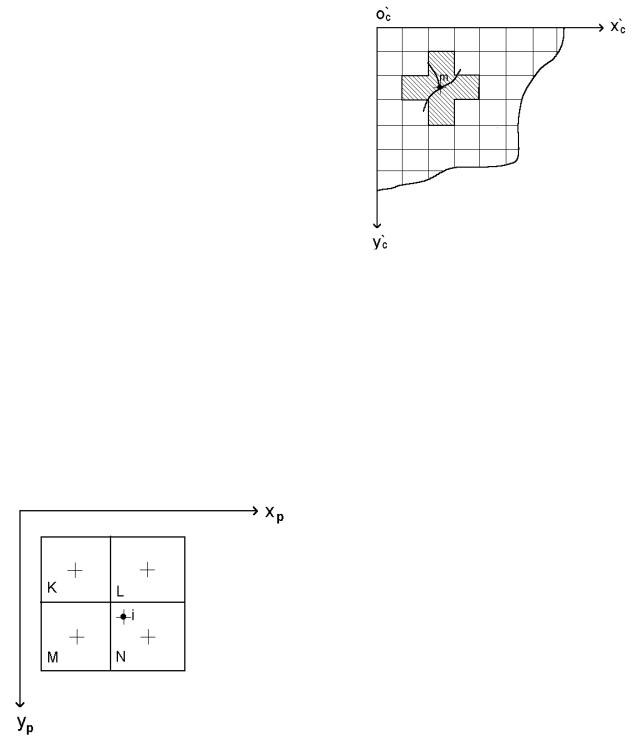 На рисунке 6.18 представлен фрагмент исходного цифрового изображения с измерительной маркой и точкой изображения m, координаты которой необходимо измерить.