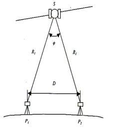 Если предположить, что расстояния от спутника S до двух точек на земной поверхности Р1 и Р2 приближенно равны друг