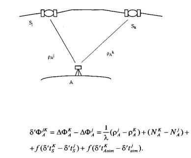 Характерная особенность этого метода заключается в образовании разности результатов фазовых измерений при одновременных наблюдениях одним приемником двух спутников. При этом образующаяся разность фаз может быть описана соотношением: