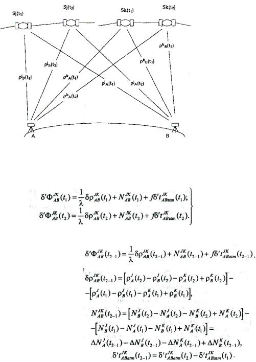 где индекс j относится к спутнику Sj, а индексы А и В - к двум пунктам наблюдения А