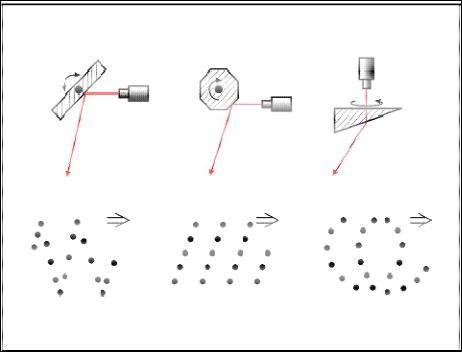 Развертка с использованием оптического клина также не отличается особой гибкостью. Кроме того, при использовании этого метода наблюдается наибольшая неравномерность распределения лазерных точек, причем минимальная плотность приходится как раз на середину полосы захвата, т.е. на ту область, которая и представляет наибольший интерес. Однако, сканирование с использованием оптического клина имеет одно важное преимущество. При реализации этого метода каждый участок полосы съемки сканируется дважды – при подлете и при отлете от этого участка. Такая особенность, во-первых, позволяет получать отклики от вертикально расположенных объектов, таких как стены здания, стволы деревьев или опоры ЛЭП, а, вовторых, создает исключительно благоприятные условия для самокалибровки лидара.