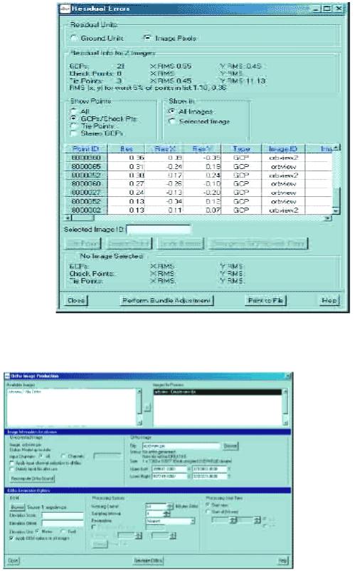 Для того чтобы получить ортоисправленное изображения, перейдите к операции Ortho Generation. Выберите файлы для обработки, файл DEM (цифровой модели рельефа), который будет использован, и установите параметры обработки. Щелкните Generate Orthos после того, как все настройки в данной
