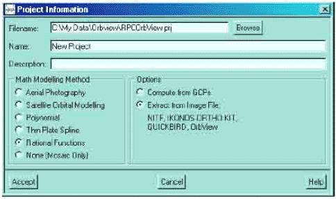 Math Modelling Method для Рациональных Функций и выберите опцию Extract from Image File. OrthoEngine