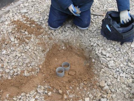 Рис. 7.4. Отбор проб уплотненного слоя грунта методом режущего кольца