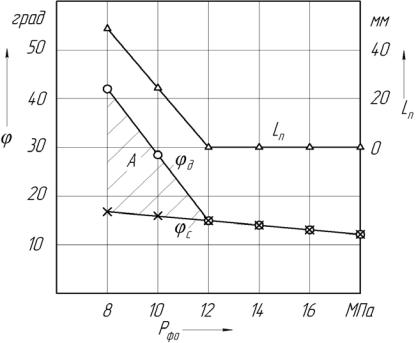 При снижении давления начала открытия иглы Рфо ниже критического газы проникают в полость распылителя. На рис. 2.1 показано, что при давлении Рфо менее 12 МПа продолжительность впрыска топлива на двигателе φд становится больше, чем на безмоторном стенде φс и прорыв газов Lп в полость распылителя увеличивается [8].