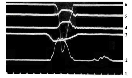 ти пружины), ход иглы 5, давление перед сопловыми отверстиями 6. Сравнение осциллограмм изменения давления в замкнутом объеме форсунки 4 и хода иглы 5 показывает их идентичность [14].