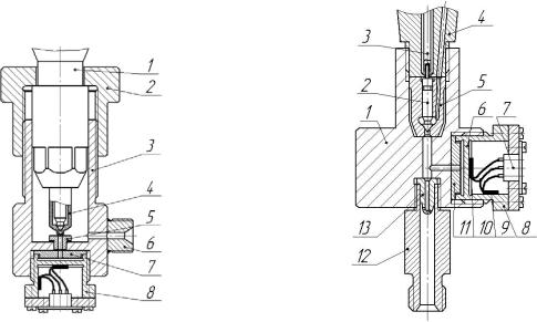 На рис. 3.6 приведена конструкция датчика для определения давления перед сопловыми отверстиями (давления впрыска). В корпусе распылителя 4 выполняется центральное отверстие, которое соединено при помощи втулки 5 с полостью мембраны чувствительного элемента 8. На рис. 3.4 приведена осциллограмма (импульс 6), записанная данным датчиком.