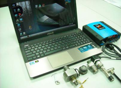 На рис. 3.8 показаны персональный компьютер, АЦП, датчик для измерения перемещения иглы («проставка»), комбинированный датчик давления и перемещения нагнетательного клапана, пьезоэлектрический датчик давления.
