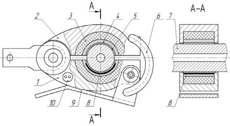 (медная фольга); 6 – петля; 7 – трубопроводИ; 8 – «пьезоплёнка»; 9 – ручка прижимного устройства; 10 – гнездо датчика