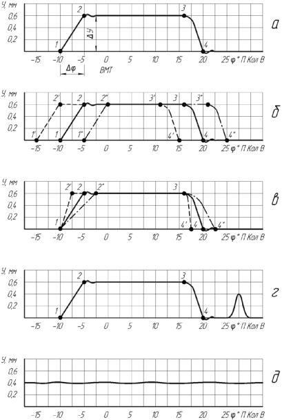 Таким образом, по расположению характерных точек на диаграммах давления топлива и движения иглы (по вертикали и