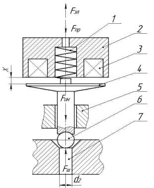 На рис. 6.12 показана схема клапанного узла (механизма управления) форсунки и силы, действующие на его детали.