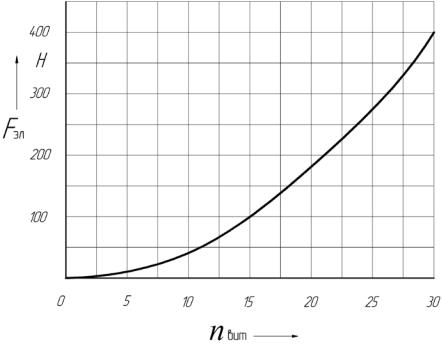 Рис. 6.13. Зависимость втягивающей силы электромагнита от числа витков катушки
