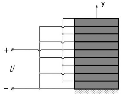 Рис. 7.3. Параллельное включение питания пьезопривода, состоящего из набора пьезопластин