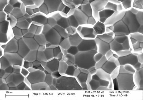 3. Обжиг – сырье керамической заготовки – подвергают обжигу при температуре 1000 – 1400 оС. Заготовка спеченная представляет собой множество мелких кристаллов. На рис. 7.5 представлен срез керамики под микроскопом высокого разрешения. В одном кубическом сантиметре содержится до 1012 зерен.
