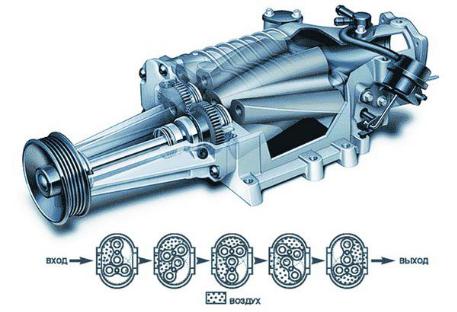 Основным преимуществом роторного компрессора, обеспечивающего механический наддув воздуха, является жесткая связь его вала привода с валом двигателя. Компрессор всегда готов подавать сжатый воздух в цилиндры двигателя. Нет необходимости ждать пока роторы раскрутятся и выйдут на свои расчетные частоты вращения. Это обеспечивает необходимый наддув двигателя при разгоне автомобиля с места и работе на переходных режимах. Преимуществом двигателей с механическим наддувом является хороший пуск и удовлетворительная приемистость (способность быстро набирать скорость вращения коленчатого вала).