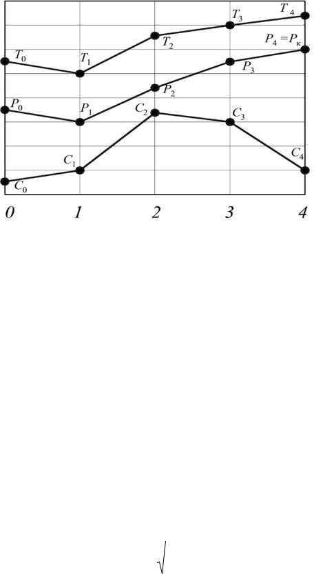 На рис. 10.4 показано изменение скорости, температуры и давления в различных сечениях центробежного компрессора.