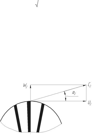 Рис. 10.5. Окружная U2, относительная W2 и абсолютная С2 скорости на выходе из колеса компрессора