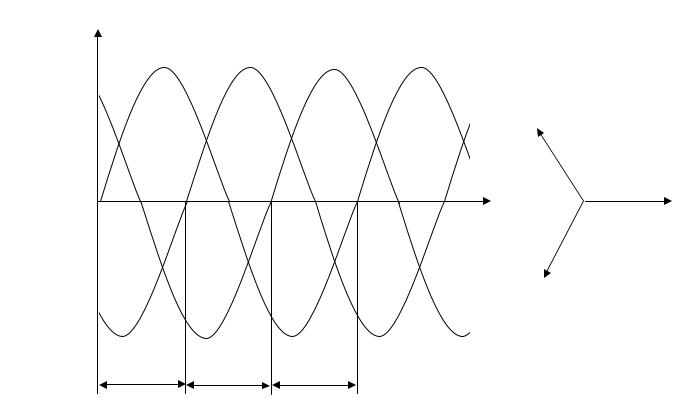 Рис. 3.1. График мгновенных значений и векторная диаграмма трехфазной системы ЭДС