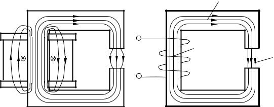 моткой, сосредоточенной в одном месте кольцевого или прямоугольного магнитопровода. В этих случаях часть магнитных линий замыкается не только по магнитопроводу, но и в окружающем пространстве, образуя линии рассеяния магнитного потока. Для удобства расчета
