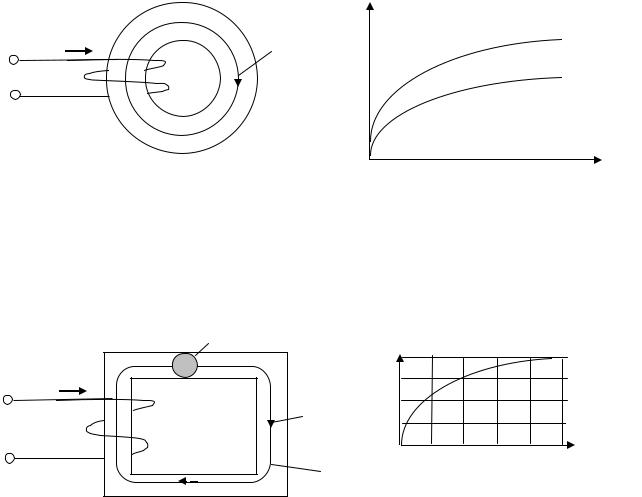 9. Если при том же значении тока I магнитопровод, выполненный из стали с кривой намагничивания А, заменить на магнитопровод с кривой намагничивания Б, магнитный поток Ф: