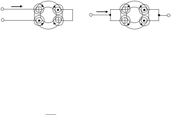 Рис. 7.7. Зависимость числа пар полюсов от схемы соединения катушек в каждой фазе обмотки статора