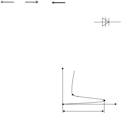 При достижении напряжением определенного значения, называемого напряжением пробоя Uпп, в переходе П2 напряженность электрического поля становится достаточной для ионизации и образования новых свободных носителей зарядов, при этом сопротивление перехода П2 резко уменьшается и тиристор открывается (рис. 10.12).