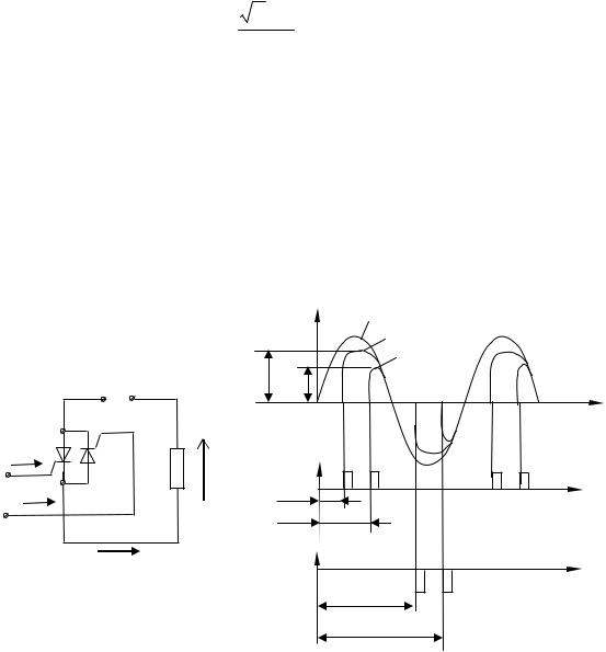 Рис. 10.17. Регулятор переменного тока на двух тиристорах и его временная диаграмма