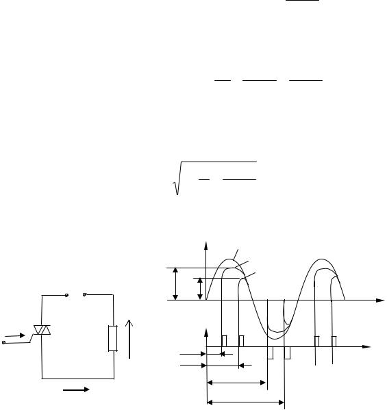 Нетрудно заметить, что средняя величина выпрямленного напряжения будет тем больше, чем меньше угол α отпирания тиристора. Если пренебречь падением напряжения на тиристоре, то зависимость среднего напряжения на нагрузке от угла отпирания определяется по выражению