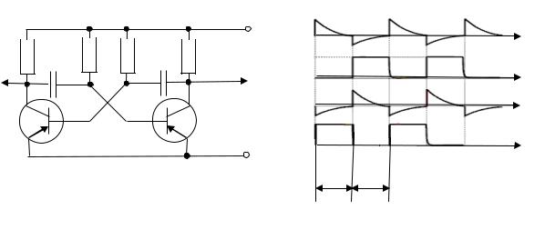 Вимпульсной технике широко применяются генераторы релаксационных колебаний. Релаксационными называют периодические колебания несинусоидальной формы, в которых медленные изменения чередуются со скачкообразными. Форма колебаний может быть прямоугольной, пилообразной и т.д. Генераторы таких колебаний могут работать в автоколебательном или ждущем режиме и используются в качестве запускающих и переключающих устройств, для деления частоты и других целей. Одним из видов релаксационных генераторов является мультивибратор, вырабатывающий колебания практически прямоугольной формы. Мультивибратор является импульсным устройством, в котором усилительный элемент работает в ключевом режиме.