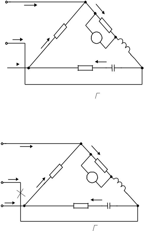 3 Ом; линейный провод В находится в обрыве; показания вольтметра V1 составляют 200 В.