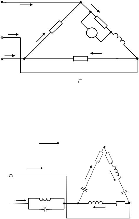 Определить все токи, показания вольтметра V1, фазные напряжения, активную, реактивную, полную мощности. Построить векторную диаграмму.