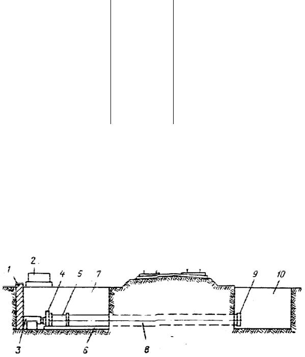 Рис. 9.2. Прокладка труб способом продавливания (прокалывания): 1 – упорная стенка; 2 – насос высокого давления; 3 – домкратная установка; 4 – нажимная заглушка;