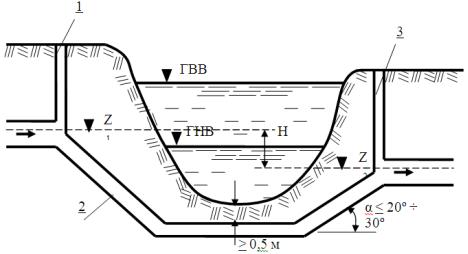 Рис.бА3.7. Схема канализационногоДдюкера: 1 – входная камера; 2 – трубопроводы; 3 – выходная камера
