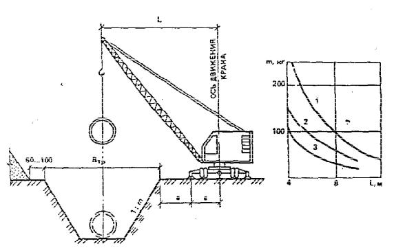 его грузоподъемность. Чтобы избежать этого, кран следует установить на расстоянии1,5 – 2 м от бровки траншеи с условием, чтобы он не находился