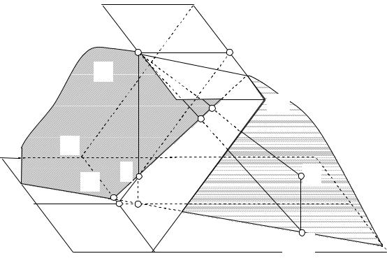 Совмещенное положение всех трех основных плоскостей вместе с построениями на них называется эпюром (от французского «épure» – «улучшенный»). Если эпюр получен путем увеличения угла наклона картинной плоскости до 180 (как на рис. 2.6), он называется эпюром растяжения (рис. 2.7), а если уменьшением этого угла до 0 – эпюром сложения (рис. 2.8).