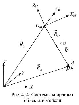 Векторы R0 и RА определяют положение начала системы координат модели ОМХМYMZM и точки А местности относительно начала системы координат объекта OXYZ.