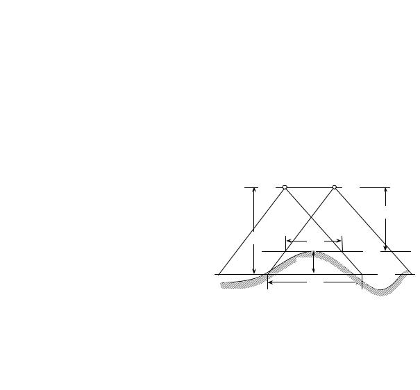 перекрытий выполняют по эмпирическим формулам, учитывающим поправки к их оптимальным значениям (62 % и 32 %), зависящие от величины превышения h над средней плоскостью съемочного участка и высоту H фотографирования над ней: